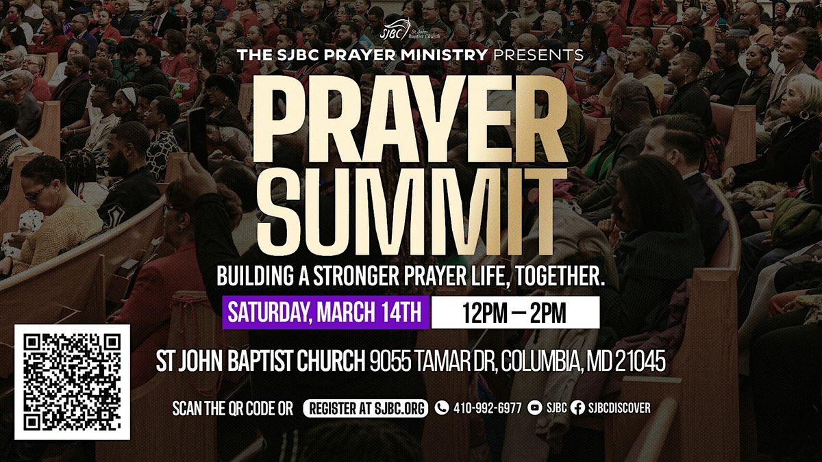 Don’t miss the Prayer Summit on Saturday, October 18, from 10:00 a.m. to 12:00 p.m. in the Sanctuary, hosted by the SJBC Prayer Ministry.