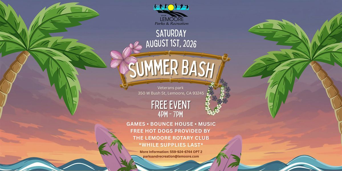 Join us for a day of fun at the 2026 Summer Bash! This in-person event is your perfect chance to soak up the sun, enjoy some tunes, and great vibes. Don't miss out! come out and enjoy the games, bounce houses, music, raffle, and FREE hot dogs (while supplies last). Bring your energy and let's make unforgettable memories together!