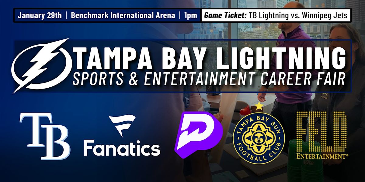 Please join us for the 2026 Tampa Bay Lightning Sports & Entertainment Career Fair hosted by the Tampa Bay Lightning at Amalie Arena! Don’t miss this unique opportunity to meet sports employers from organizations in Tampa and the surrounding area. All attendees will receive a ticket to see the Lightning take on the Winnipeg Jets the night of the event at 7pm ET.