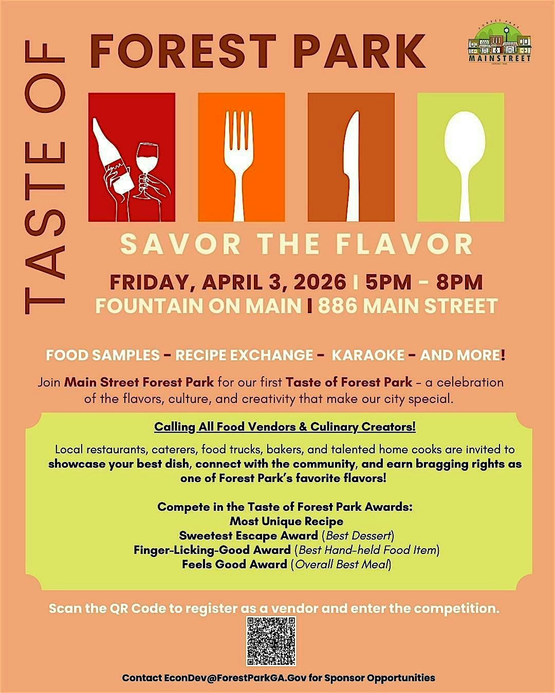 Join Main Street Forest Park for our first Taste of Forest Park - a celebration of the flavors, culture, and creativity that make our city special.
