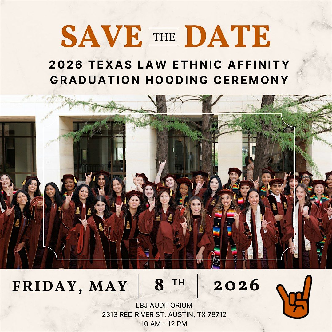 Get ready to celebrate in style at the 2026 Texas Law Ethnic Affinity Graduation Hooding Ceremony! This in-person event is all about honoring our amazing graduates and the unique cultural backgrounds that make our community so special. Join us for a memorable day filled with celebration, laughter, and a strong sense of belonging. Donβt miss the chance to cheer on your friends and family as they take this huge step forward!