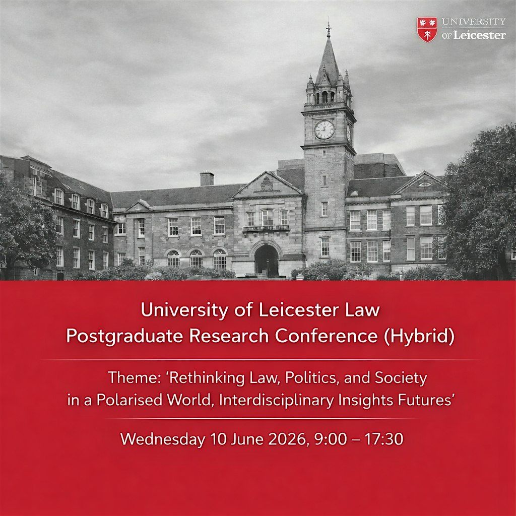 The University of Leicester Law Postgraduate Research Conference (hybrid) invites contributions that critically engage with these dynamics. Under the theme “Rethinking Law, Politics, and Society in a Polarised World: Interdisciplinary Insights and Futures,” the conference seeks to explore how legal systems respond to, reinforce, or challenge polarisation across local, national, and global contexts. It foregrounds the need for interdisciplinary approaches that draw from political theory, sociology, technology studies, and related fields to better understand the evolving role of law.