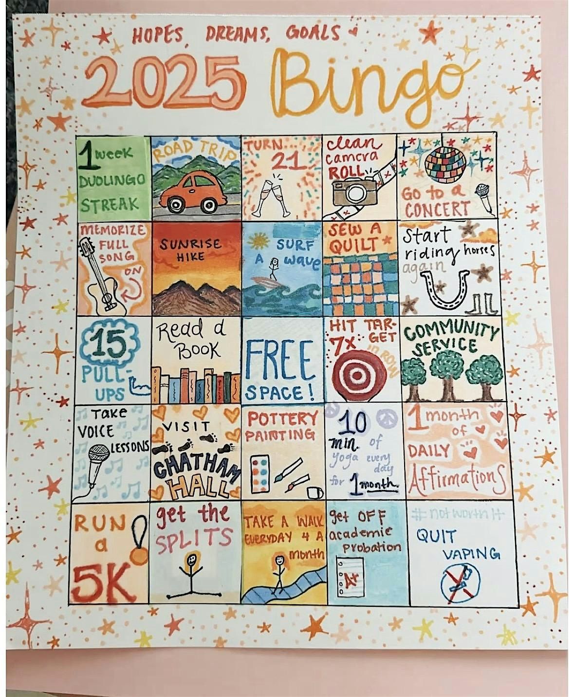 Get ready to design your very own Vision Board Bingo card for 2026! This interactive experience allows you to visualize your goals for the upcoming year and turn them into a bingo-style board you can cross off as you achieve them throughout 2026. We’ll also take time to intentionally say goodbye to the habits, mindsets, or experiences you’re ready to leave behind in 2025.