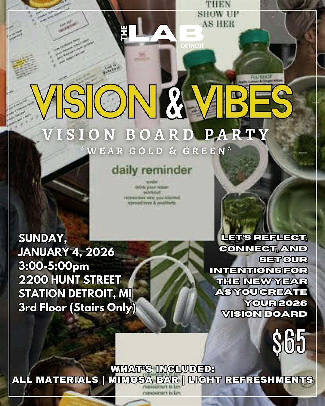 Join us at The Lab Detroit for a fun and creative Vision Board Party where we come together to reflect, connect, and set intentions for the year ahead. Enjoy a welcoming atmosphere, inspiring prompts, and all the materials needed to bring your goals and ideas to life. Come reset, get inspired, and step into the new year with clarity and confidence! Can't wait to see you there ✨
