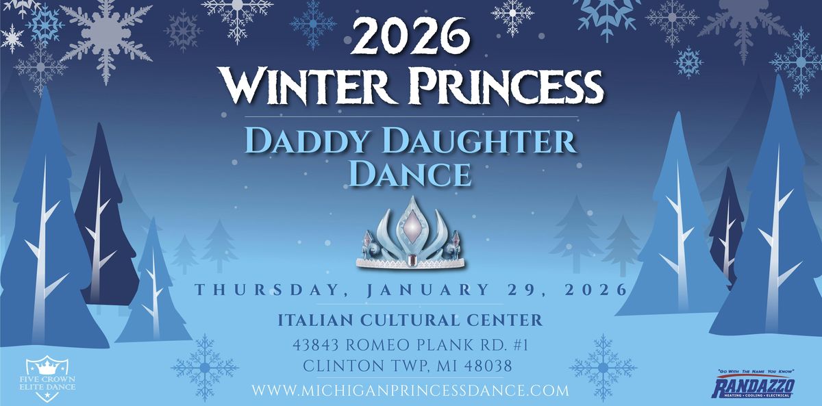 Mark your calendars for a night of enchantment at the 2026 Winter Princess Daddy/Daughter Dance! Dress up like your favorite princess and join us on Thursday, January 29th, 2025, at the Italian Cultural Center in Clinton Township, Michigan, for an evening filled with magic and memories.