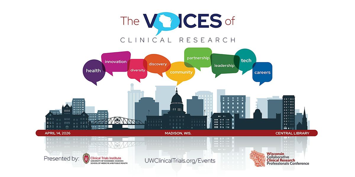 Join others who have a shared interest in advancing clinical research and improving health outcomes in our state and beyond! The conference will be held April 14, 2026 at the Madison Public Library - Central. The event will bring together the βVoices of Clinical Research,β participants, researchers, industry partners, academic health centers, students, and community organizations who collectively work to advance clinical research.