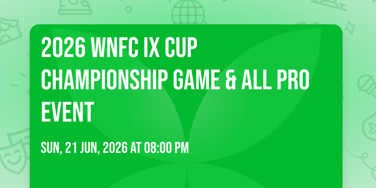 📍 Location: 33.1095, -96.8272🌟 Step into a world of wonder at 2026 WNFC IX CUP CHAMPIONSHIP GAME & ALL PRO EVENT, where extraordinary moments await! 🏛️ Located at Ford Center in dynamic Frisco, TX, this event will become the talk of the town. 📅 Join us on June 21st, 2026 at 08:00 PM for a celebration that defies the ordinary. ✨ This curated experience brings together the best of entertainment, culture, and community spirit. Every detail has been thoughtfully planned to ensure an unforgettable experience for all our guests. 🎯 Take advantage of this opportunity to be part of something special. 🎊 Early registration is recommended as space is limited!