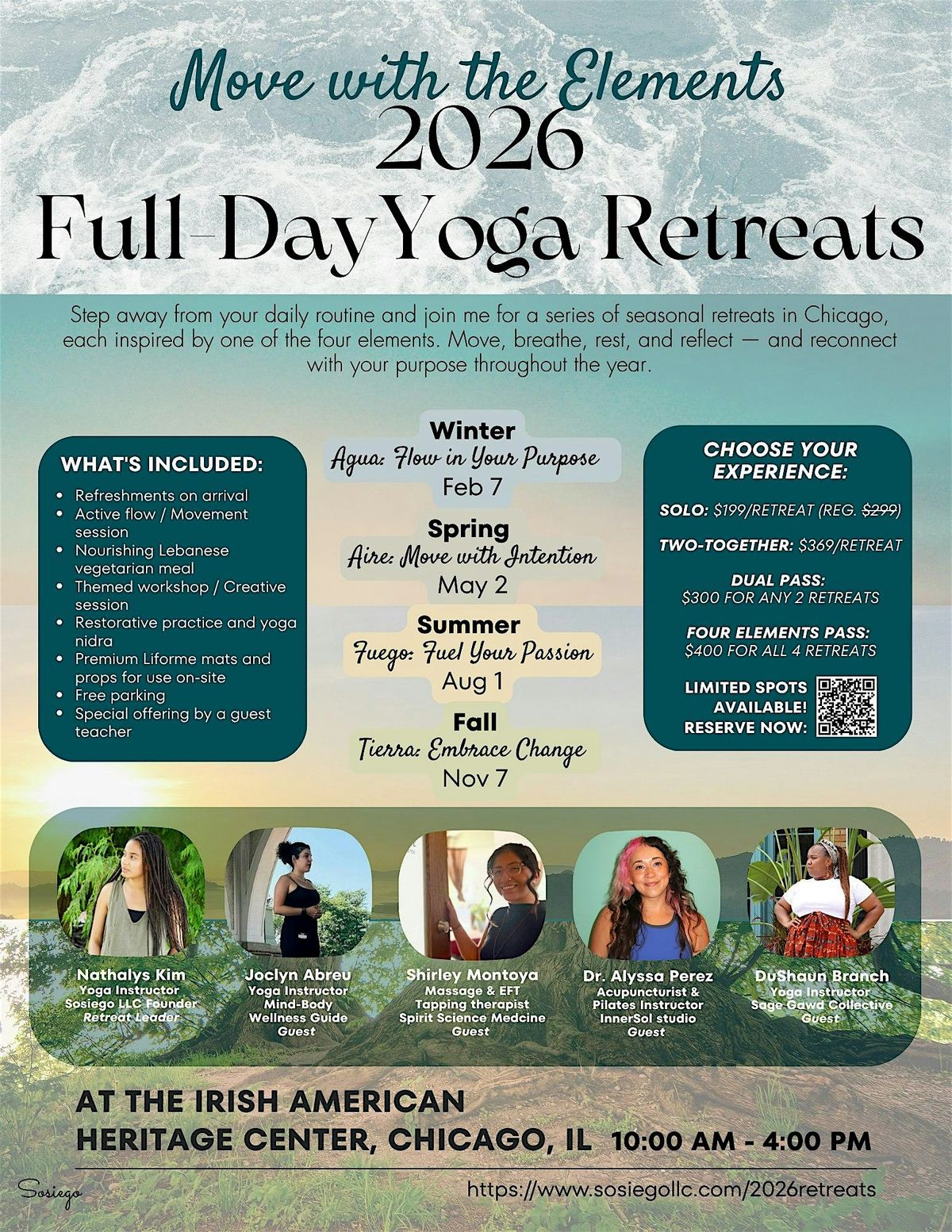 - Mindset: Come with an open heart and mind, ready to embrace the experience! This will be a day dedicated to wellness at the Irish American Heritage Center, featuring Lebanese food, an Afro-Latina instructor, and a nurturing and inclusive atmosphere for all.
