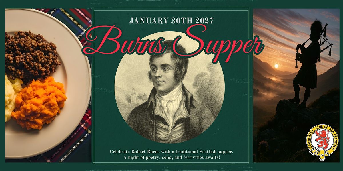 The Caledonian Club of San Francisco proudly celebrates the 268th Anniversary of the Bard’s birth with a night steeped in ritual, revelry, and remembrance. Guests will enjoy a traditional supper, stirring performances, and toasts echoing centuries of Scottish pride and poetic brilliance.