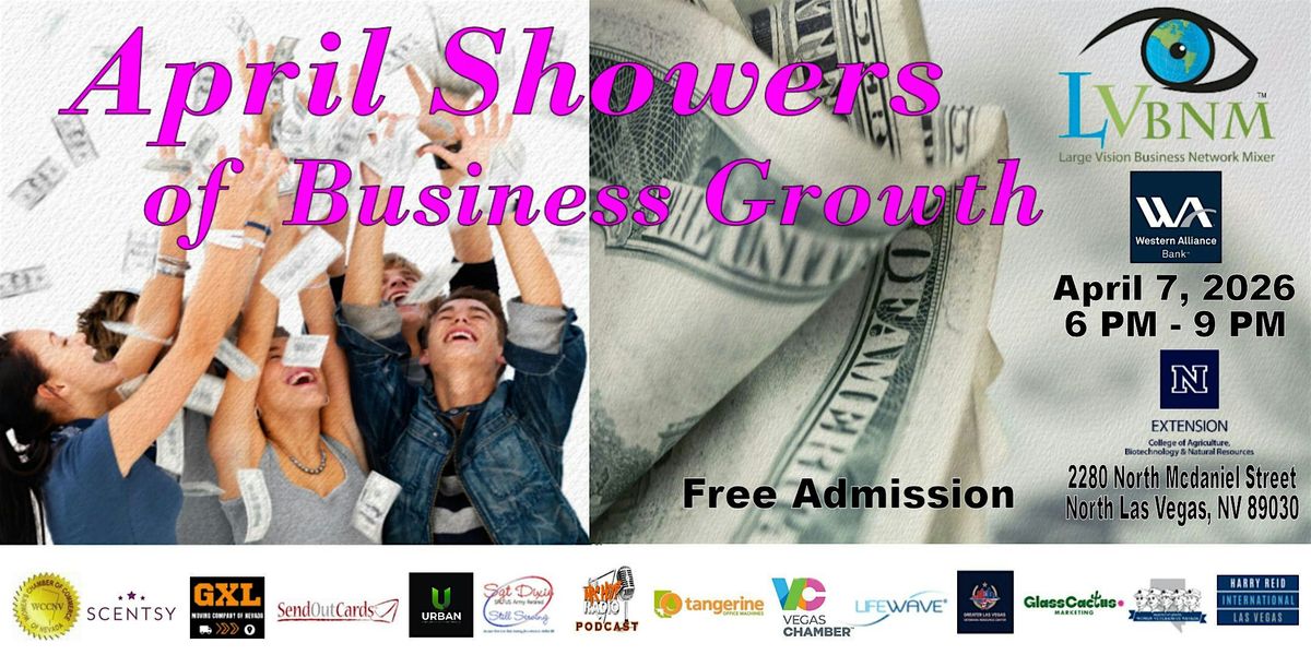 20th Annual April Showers of Business Growth, produced by Large Vision Business Network Mixer. It’s a mega mixer expo with businesses exhibiting from all over Clark County coming together to showcase their products and services.