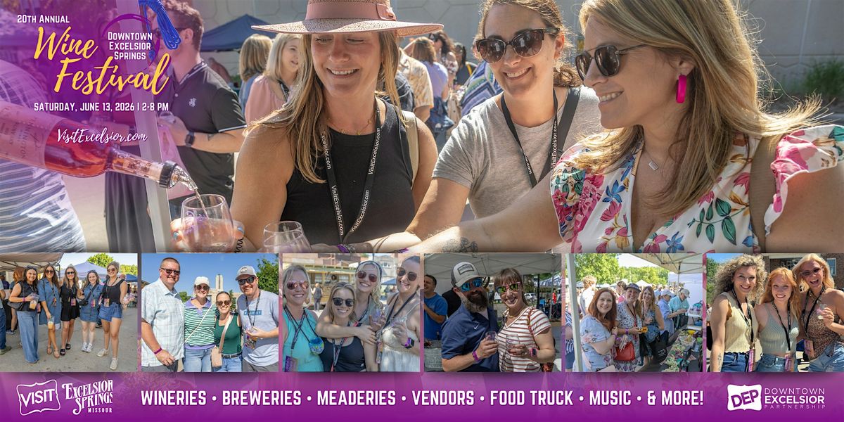 Join us Saturday, June 13, 2026 for Missouri’s premier summer wine experience featuring 20+ wineries, 85+ wine tastings, live music, artisan vendors, and a full afternoon of unforgettable fun in historic Downtown Excelsior Springs.