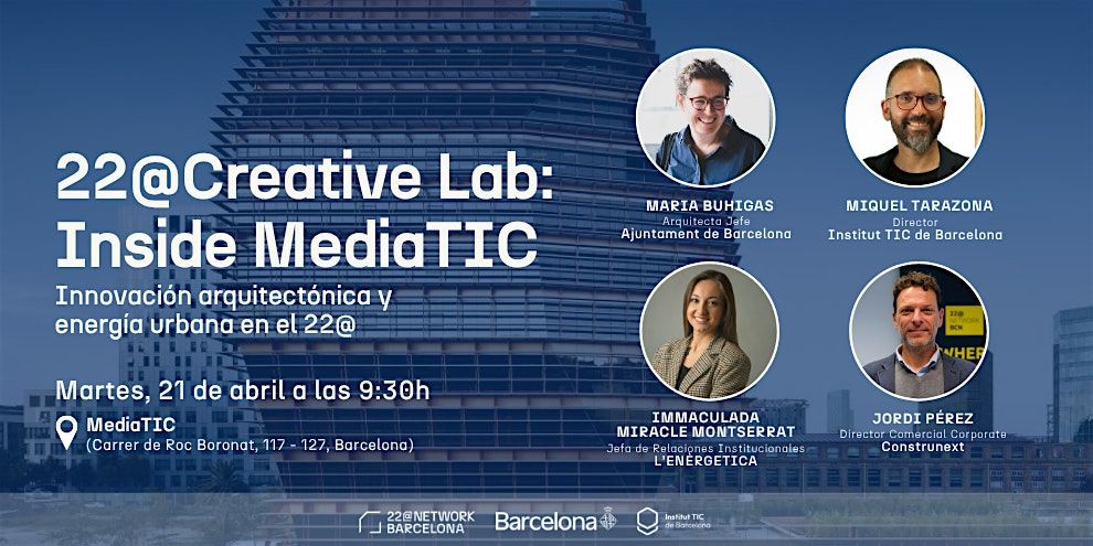 La primera sesión tendrá lugar en el edificio MediaTIC, uno de los iconos arquitectónicos del 22@ y referente internacional en innovación, sostenibilidad y arquitectura tecnológica.
