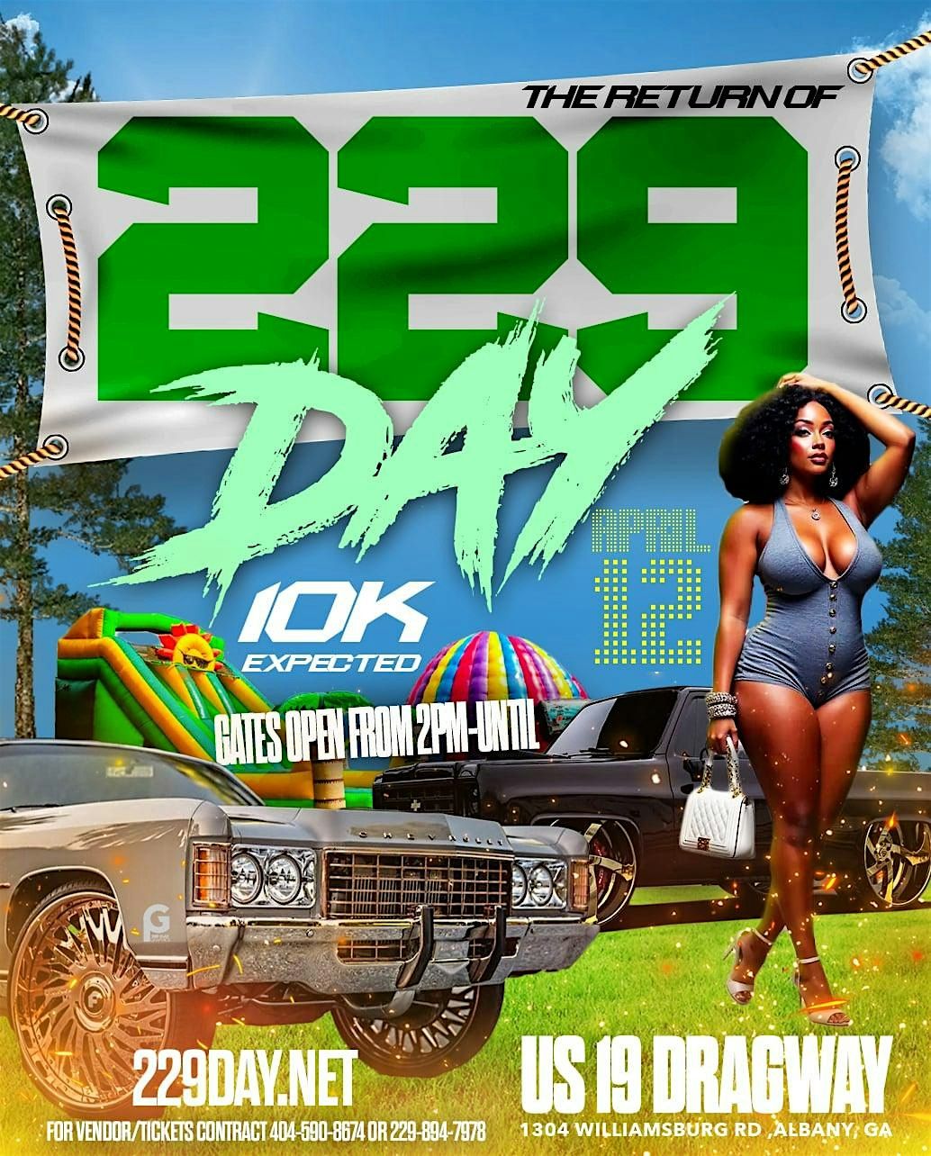 The return of 229 Day. Text or call 404-590-8674 or (229) 894-7978 for Vendor Slots/Artist Info