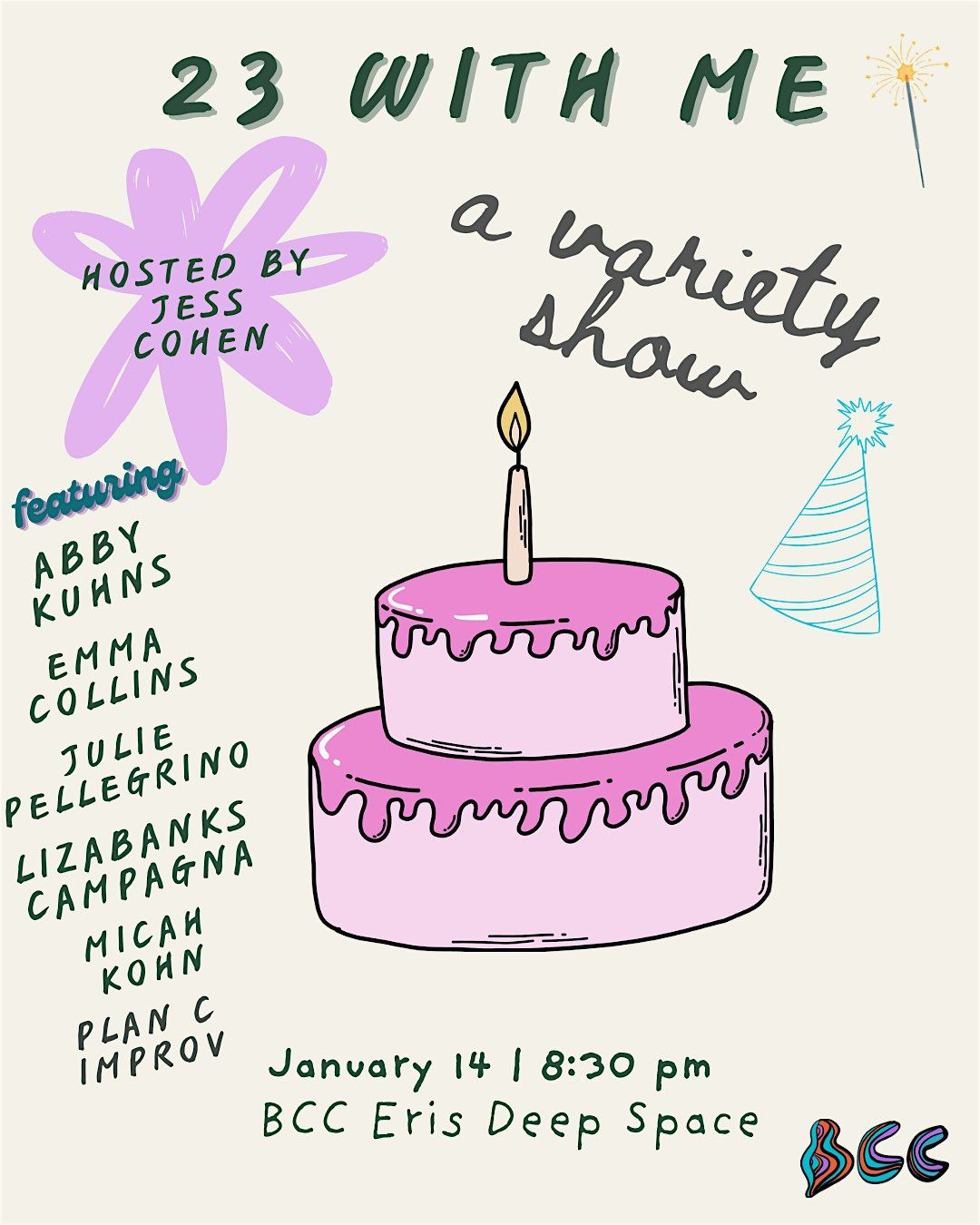 23 With Me is a variety hour hosted by Jess Cohen. Enjoy stand up and improv from your favorite up-and-coming comedians. And who knows…you might even learn a little more about yourself!