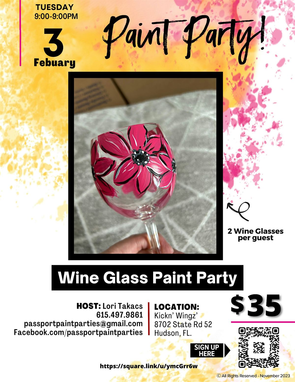 Join us on 2/3/26 for a creative Wine Glass Sip and Paint event at Kickn' Wingz'. Participants will design and paint two wine glasses, guided by an experienced instructor in a relaxed and welcoming atmosphere. All necessary materials, including the glasses and paints, will be provided. Reserve your spot today for an enjoyable evening of art and conversation.
