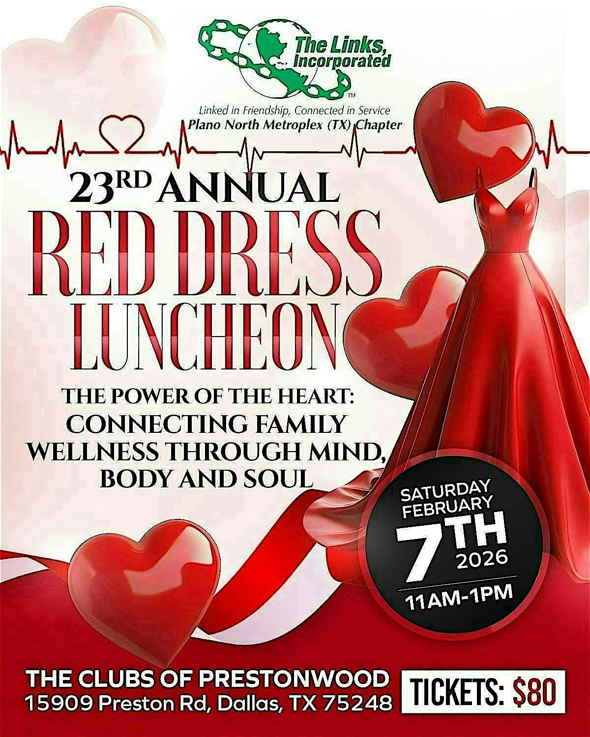 Come celebrate with us at The Clubs of Prestonwood - The Creek for an afternoon filled with fun, food, and friends. Wear your best red dress and enjoy a fabulous luncheon surrounded by a community of supporters. Let's make this year's event the best one yet! See you there!