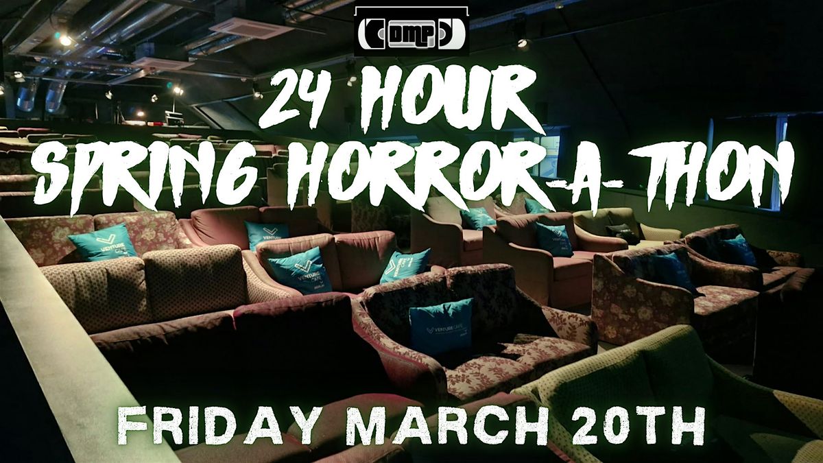 DMP Cinema invites you to celebrate EIGHT YEARS of DMP events with our big upcoming 24 HOUR HORROR MOVIE MARATHON at our new indoor rooftop cinema venue - with super comfy couches and top quality picture and sound system! Experience THIRTEEN horror classics back-to-back! PLUS enjoy an EXTRA LONG HORROR MOVIE TRIVIA with awesome prize giveaways, drinking games, barf bags full of candy, classic horror trailer shows, classic grindhouse intermission pauses, and MORE!