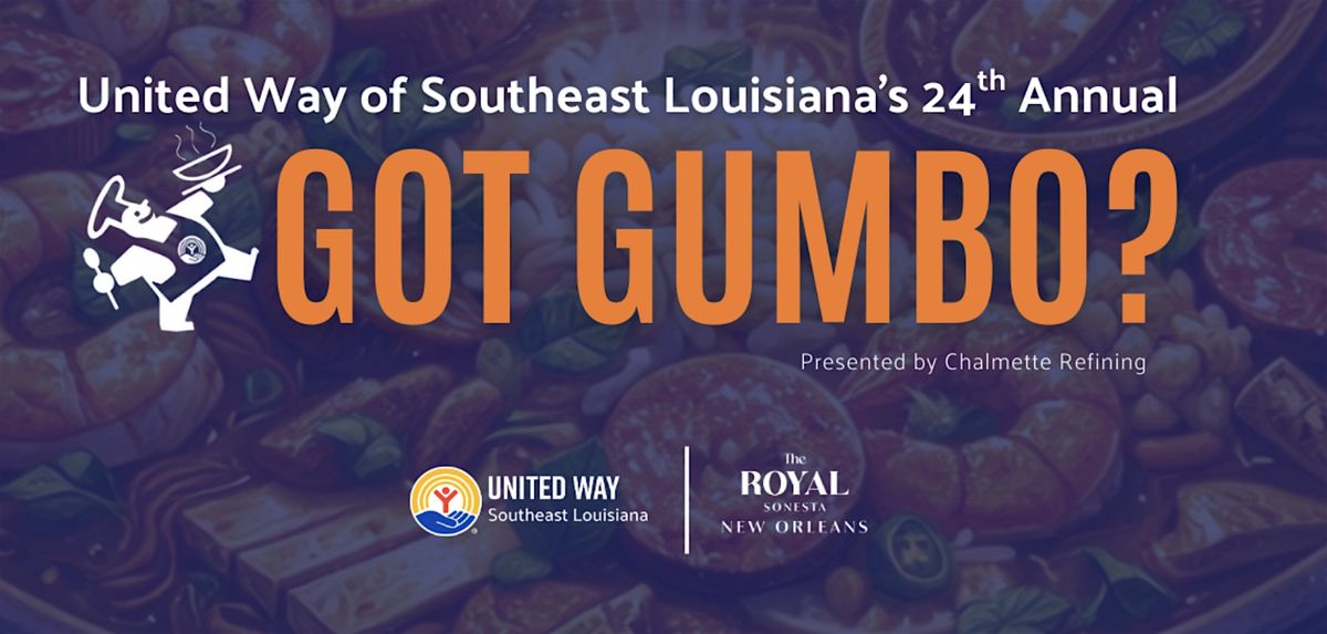 United Way of Southeast Louisiana, in partnership with the Royal Sonesta New Orleans, is proud to present the 24th Annual “GOT GUMBO?” Cook-Off, presented by Chalmette Refining, on Wednesday, March 25, 2026, from 6:00 p.m. to 8:30 p.m. Join us for one of New Orleans’ most anticipated culinary events. The 24th Annual Got Gumbo? Cook-Off brings together top local restaurants, chefs, sponsors, and community leaders for an unforgettable night of food, friendly competition, and community impact, all in support of United Way of Southeast Louisiana.