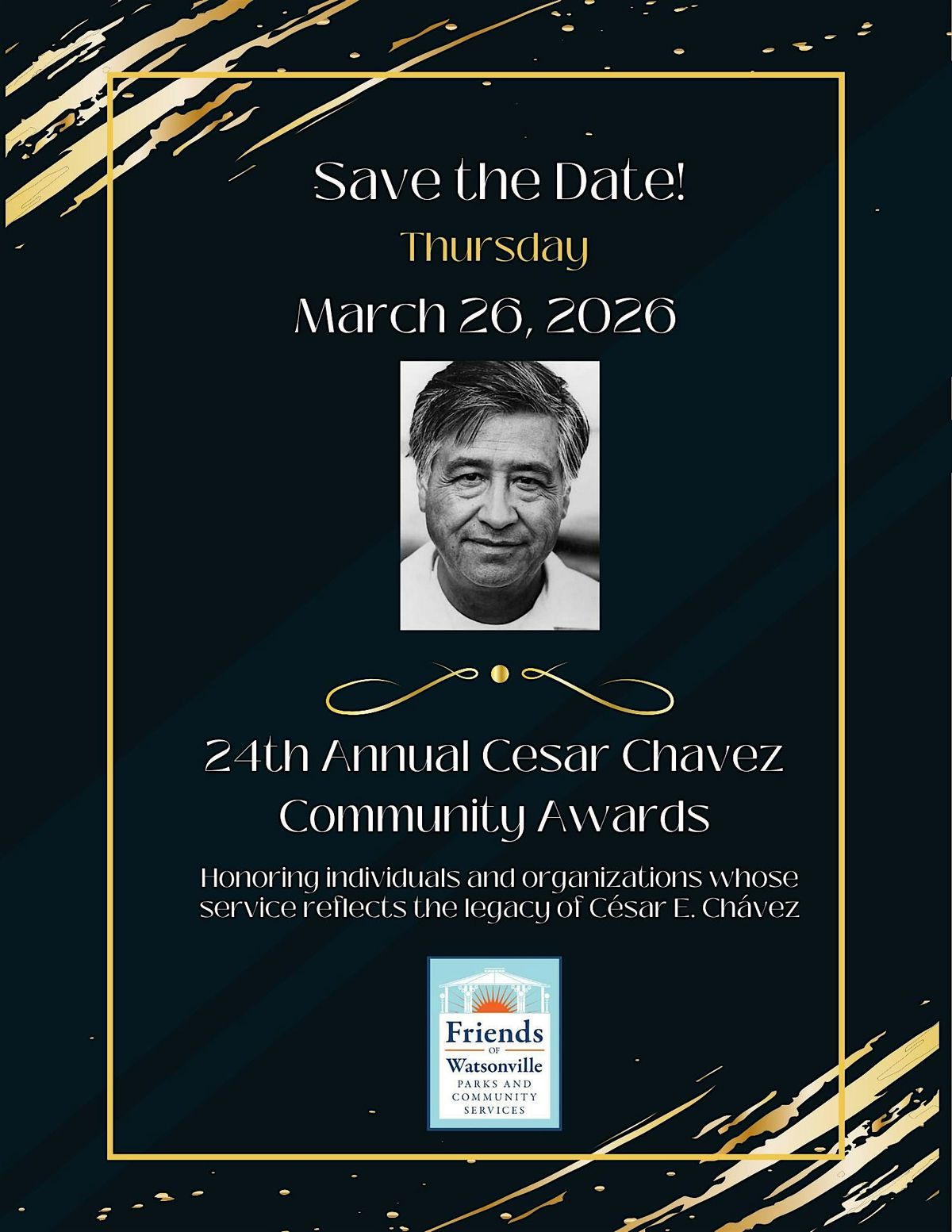 The Friends of Watsonville Parks & Community Services invites you to join us for a memorable evening honoring individuals, businesses, and organizations whose service reflects the legacy of Cesar E. Chavez.