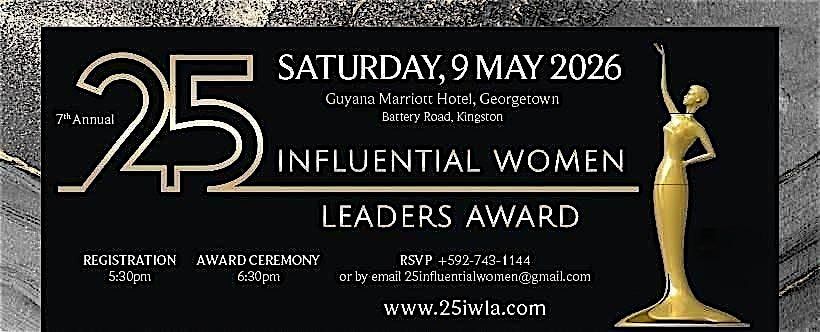Join us for the seventh edition of the 25 Influential Women Leadership Awards (25IWLA) Gala, a premier, high-level celebration honoring outstanding Guyanese women who are trailblazers in leadership, empowerment, innovation, and ambition. This signature event brings together leaders, executives, entrepreneurs, and changemakers for a powerful night of recognition, connection, and inspiration.