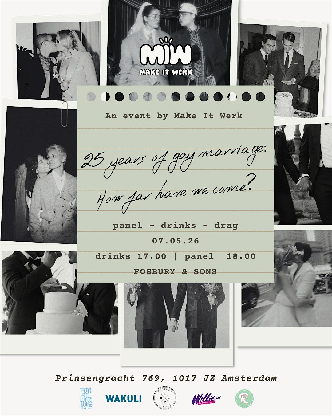 To mark 25 years since the world’s first legally recognised same-sex marriage, which took place in Amsterdam in 2001, Make it Werk is hosting a special evening that celebrates this historic milestone while asking an important question: how far have we really come?