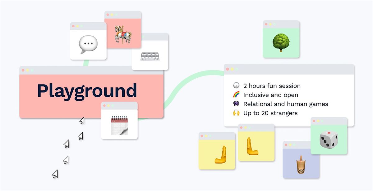 Playground is a fun human experience, where strangers meet for games and creative exercises. An event where you can get to know others through their presence and interactions, and befriend them in a human, and sometimes silly way.