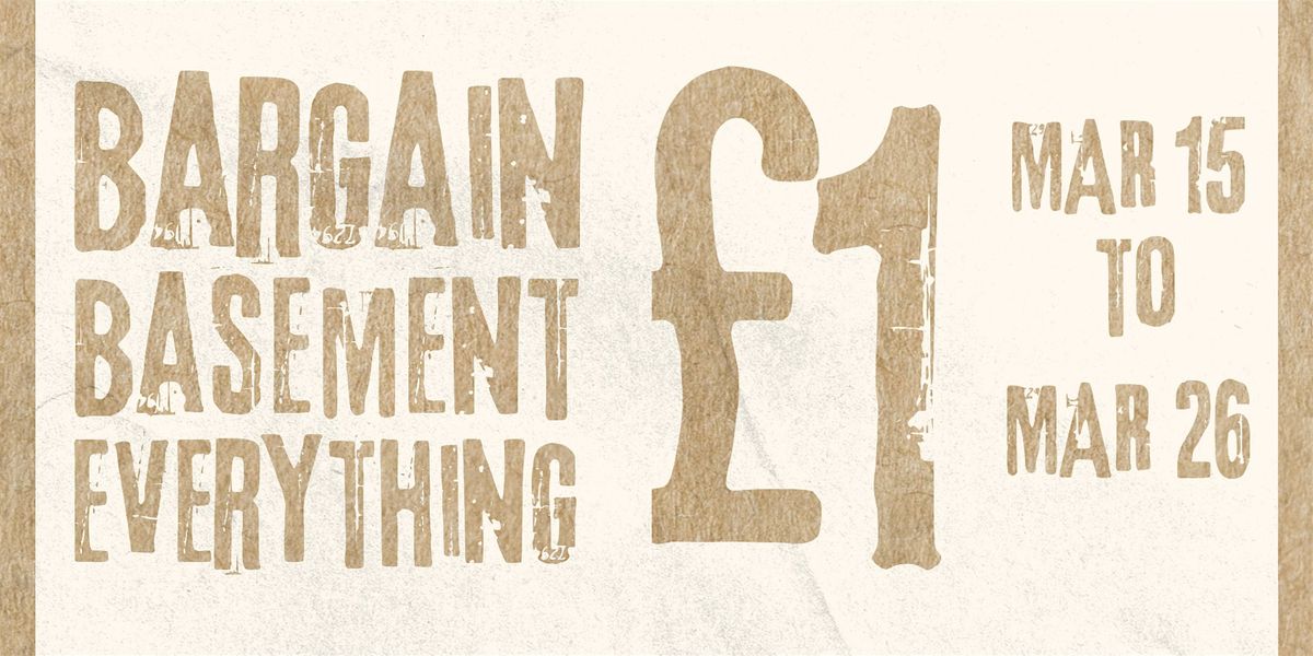 Join us at a the spring edition of Bargain Basement! For the last two weekeds in March you'll get an opportunity to shop clothes, shoes, and accessories for just £1! Our Bargain Basement events will be running from Wednesday to Sunday in March from 10AM to 5PM at the FFF Shop.