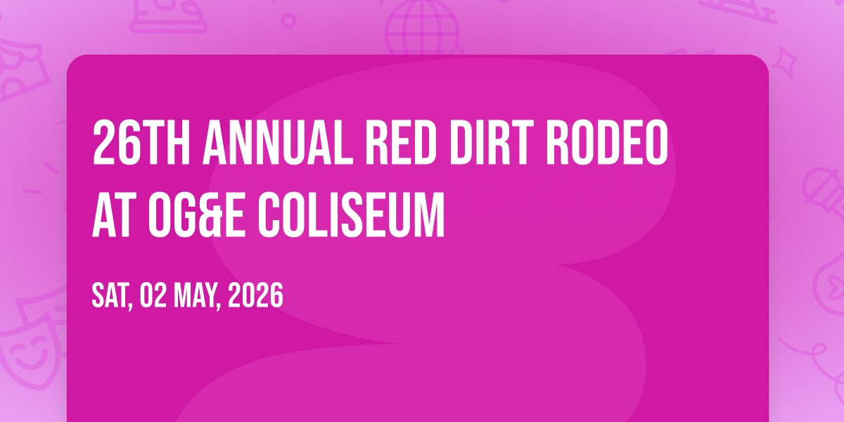 ✨ Discover the extraordinary at 26th Annual Red Dirt Rodeo at OG&E Coliseum, where magic meets reality in ways you've never imagined! 🏛️ Set in OG&E Coliseum nestled in bustling Oklahoma City, OK, this event promises to be a landmark occasion. 📅 Taking place on May 2nd, 2026 at 01:00 PM, it's going to create an atmosphere where every moment becomes a cherished memory. 🌟 Immerse yourself in an experience crafted with attention to every detail, designed to surprise and delight at every turn. They have worked tirelessly to ensure this event exceeds all expectations, bringing together elements of entertainment, innovation, and pure joy. 🎊 Don't miss your chance to be part of this remarkable journey!