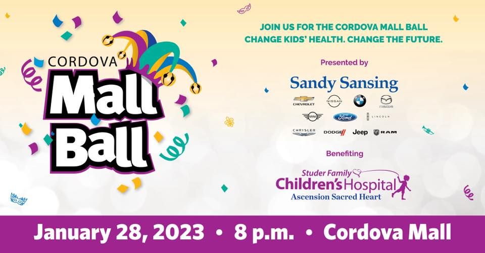 Join us on Saturday, January 28, 2023 for the 27th Annual Cordova Mall Ball, presented by Sandy Sansing Dealerships. We will be live and in-person again with music, food tastings from area restaurants, a silent auction, French Market and more! Proceeds from the event benefit the Studer Family Children’s Hospital at Ascension Sacred Heart.