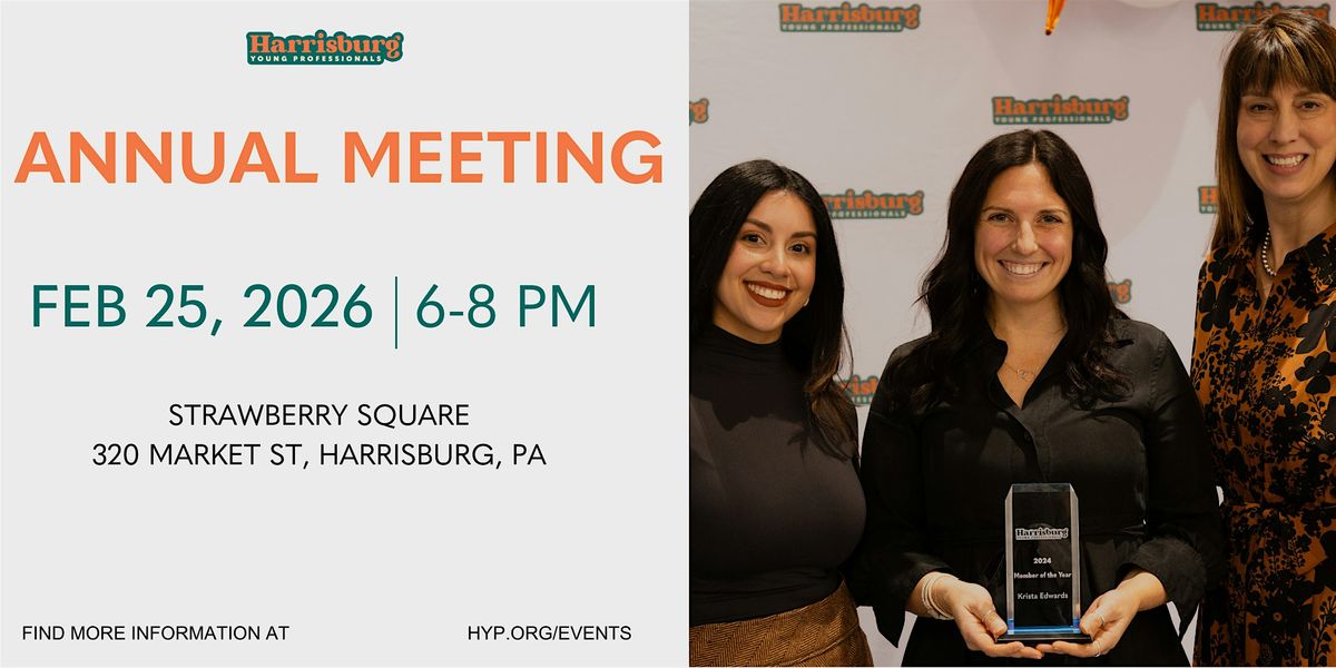 Join us on February 25th for Harrisburg Young Professionals’ 28th Annual Meeting & Awards Night at Strawberry Square. We’ll reflect on the past year, look ahead to what’s next, and hear special remarks from guest speakers.