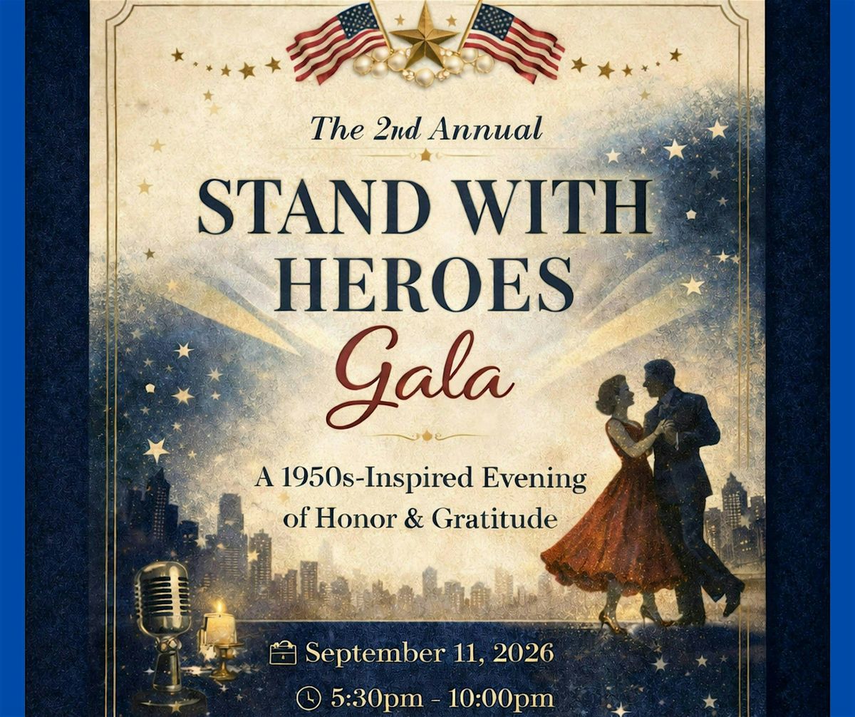 Step back in time for an unforgettable evening at the 2nd Annual "Stand with Heroes" Gala, a stylish night of 1950s class honoring active-duty military, veterans, and all first responders—the true heroes who serve, protect, and inspire our communities and our nation.