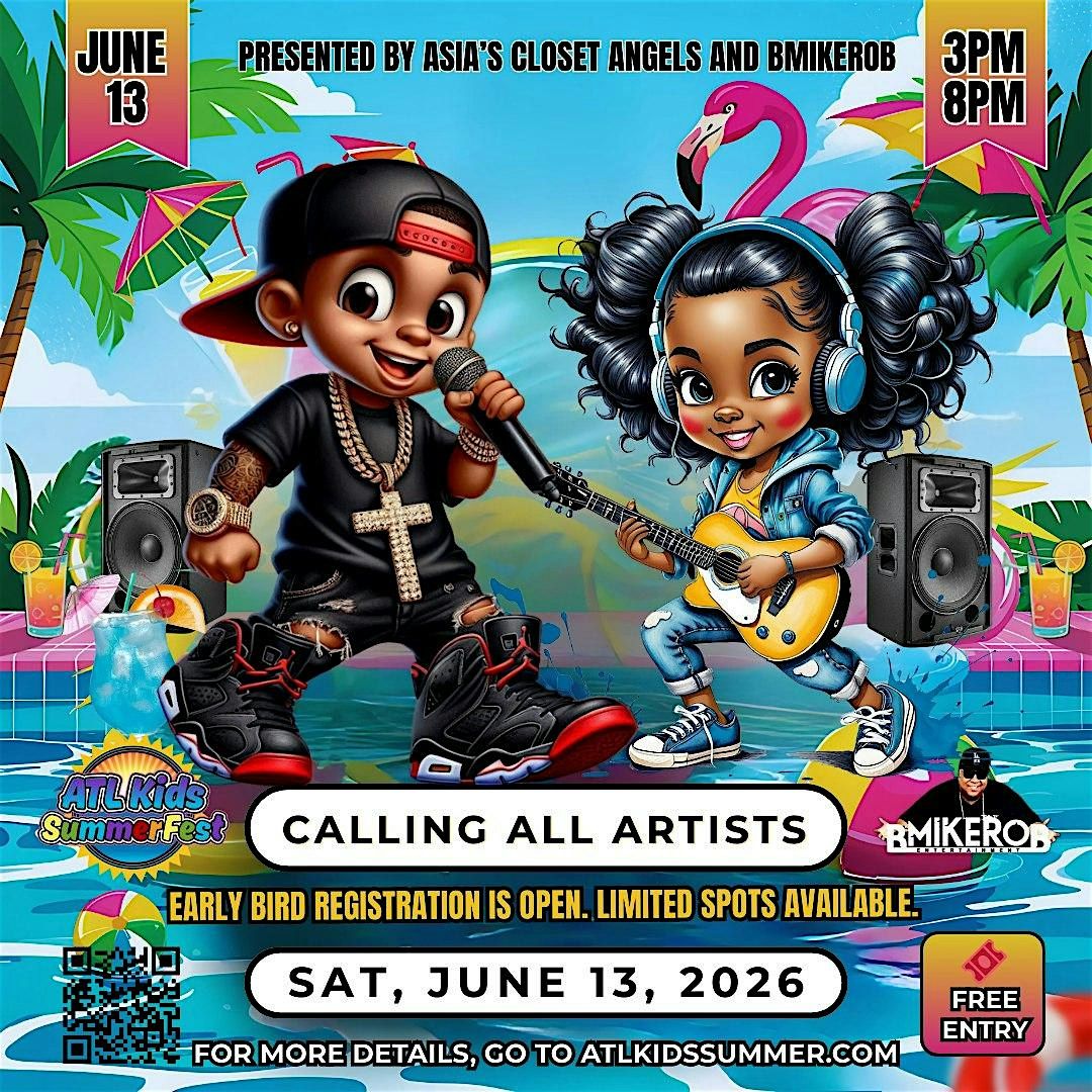 Hosted by Asia's Closet Angels and BMikeRob, the ATL Kids Summer Fest is packed with amazing performances from over 30 talented young artists. But that’s not all! We’ll have fantastic kid vendors, engaging activities, and plenty of surprises in store for everyone. It’s going to be a day of laughter, music, and fun that you won’t want to miss!