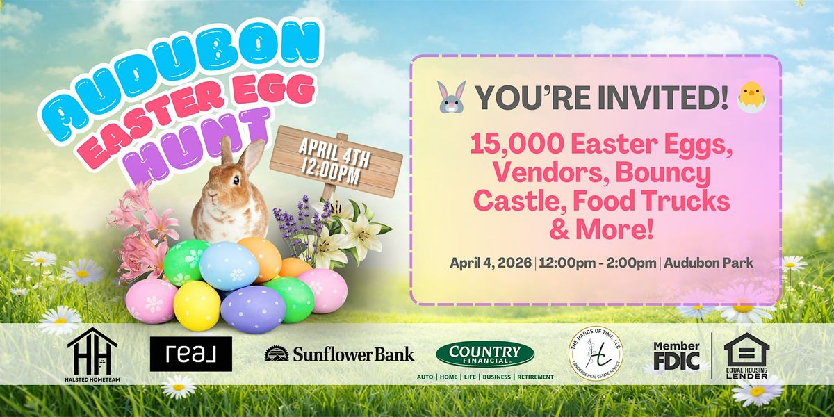 Join us for a fun-filled Easter Egg Hunt in beautiful Audubon Park on Saturday, April 4th from 12β2 PM! Whether your little ones are just starting to toddle or ready to sprint across the field, we've got a special egg hunt just for them.