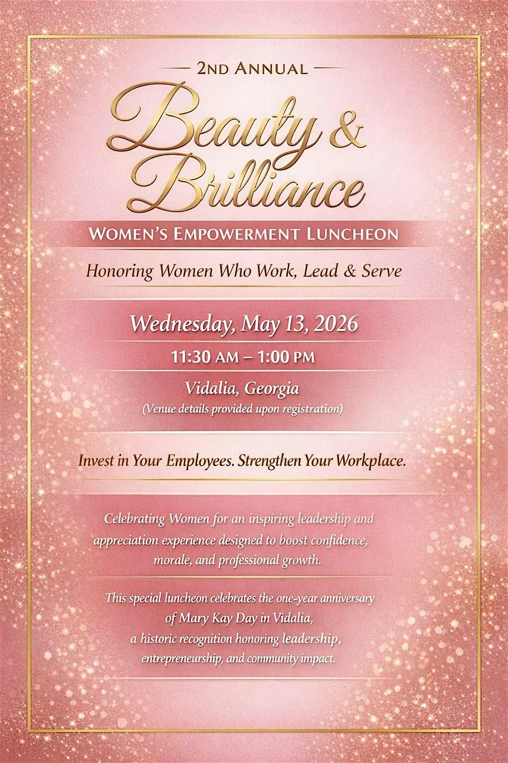 The 2nd Annual Beauty & Brilliance Women’s Empowerment Luncheon is part of the Mary Kay Day Anniversary celebration in Vidalia and will bring together professional women from across our community for a powerful time of encouragement, leadership development, and connection.