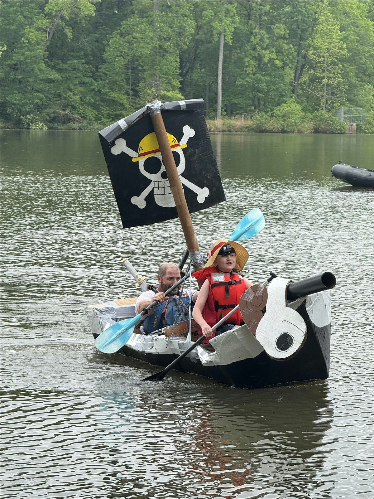 To keep our lake clean and the competition fair, all boats must be constructed strictly from cardboard and duct tape. To protect our local ecosystem, only water-soluble paints are permitted for decorations.