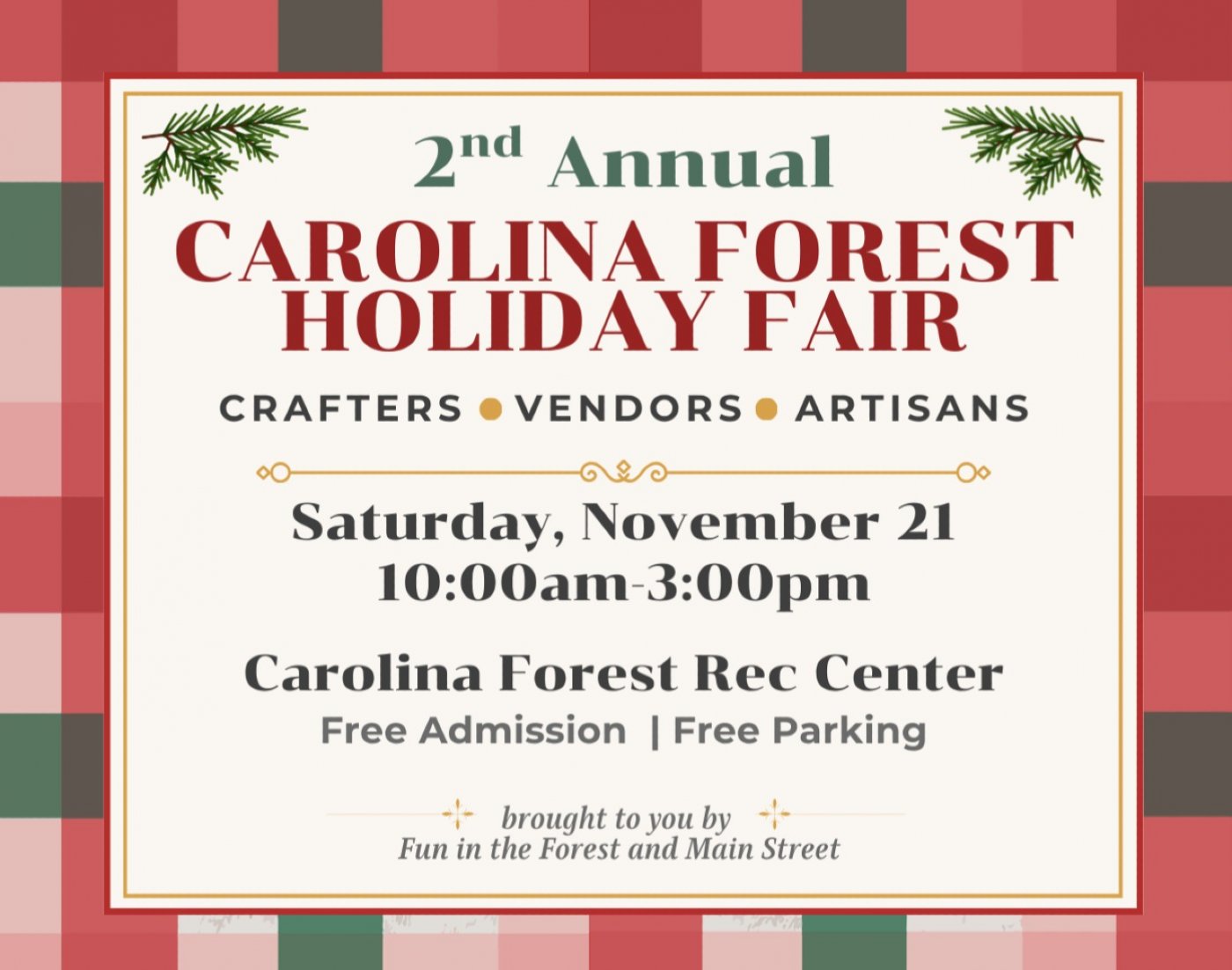 Back for its 2nd year, the Carolina Forest Holiday Fair returns on Saturday, November 21 at the Carolina Forest Rec Center in Myrtle Beach. Shop more than 100 local vendors offering handmade gifts, festive décor, sweet treats, and one-of-a-kind finds. With both indoor and outdoor shopping, it’s the perfect place to get a head start on holiday shopping while supporting small businesses.