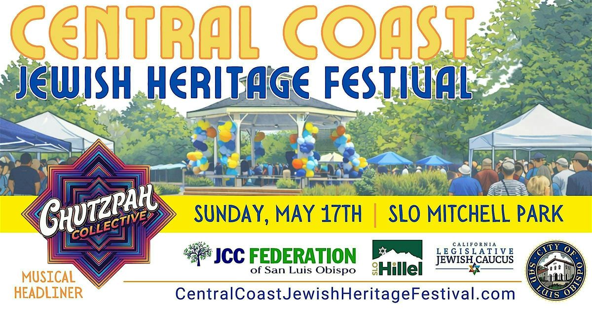 The Second Annual Central Coast Jewish Heritage Festival will take place on Sunday, May 17, from 11:00 AM to 3:00 PM at Mitchell Park in San Luis Obispo. Hosted by the JCC-Federation of SLO in partnership with SLO Hillel, this free, family-friendly event welcomes people of all backgrounds to enjoy live music, cultural exhibits, artisan vendors, traditional foods, and children’s activities. Headlined by Los Angeles-based Chutzpah Collective, the festival celebrates Jewish culture, community, and connection.
