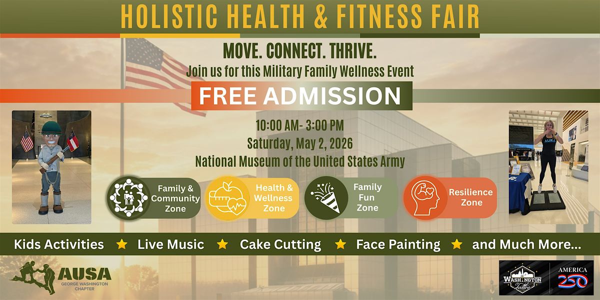 AUSA George Washington Chapter’s 2nd Annual Holistic Health & Fitness Fair (H2F2) at the National Museum of the U.S. Army will provide a comprehensive platform to promote the physical, mental, and emotional well-being of veterans, service members, and their families. By bringing together leading organizations, experts, and resources, this event aims to foster resilience, health, and community within the military and industry population.