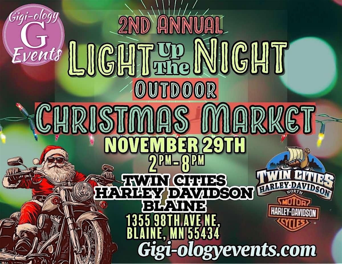 Join us for a magical outdoor holiday shopping experience at Twin Cities Harley Davidson in Blaine! Browse unique gifts, handmade crafts, holiday décor, and festive treats while enjoying the sparkling lights and Christmas cheer.