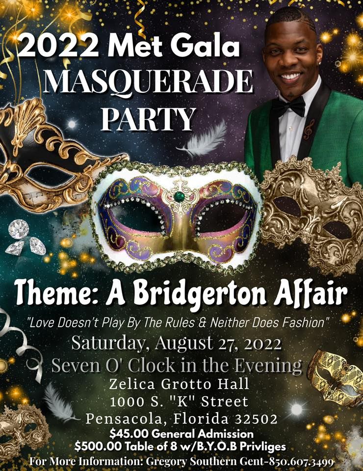 The PEOPLE have SPOKEN‼️‼️‼️ “GOWNS, CROWNS, TIARAS, BIG HAIR, TOP HATS AND MORE…DRAGGGGG BABY DRAGGGGGGG‼️‼️‼️‼️‼️?????? Pensacola’s 2nd ANNUAL MET GALA‼️Saturday, August 27, 2022 at 7pm All Pensacola Roads will lead to the Zelica Grotto Hall for the 2nd Annual Met Gala Masquerade Party‼️ Tickets and Tables are ON SALE NOW. Sponsor Opportunities and Vendor Opportunities are Available…??? As Usual, IT’S ABOUT TO BE A MOVIE ?????? Gregory Southern Gent Gregory Southern Gent II
