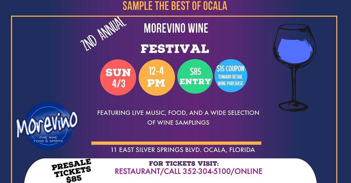 Join us on a beautiful Sunday April 3rd, 2022 with the 2nd Annual Morevino Wine Festival. Come and enjoy a day of wine samplings with over 70 wines to try, local Florida micro brews, live music and food awaits you. The event will connect into the courtyard behind the restaurant with wine professionals and wineries that will serve a vast selection of wine samplings and some Florida micro brews for our beer folks. The ticket also includes a coupon for $15 of retail wine purchases the day of the event. You can take home your favorite wines that you sampled with a retail section.