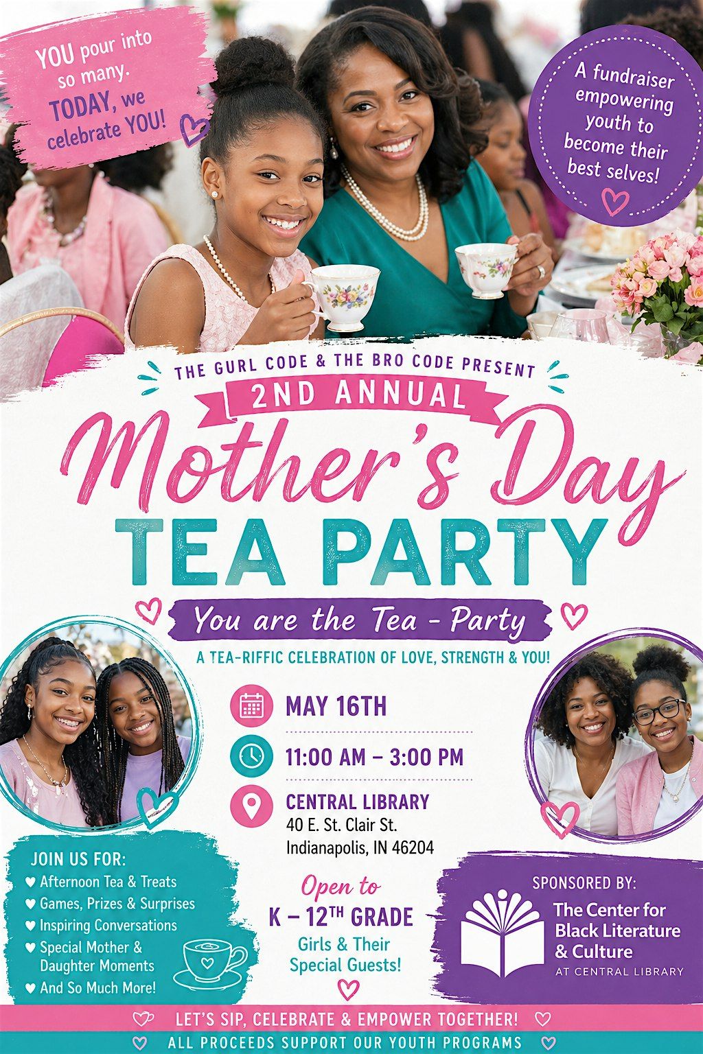 Join us for a beautiful and empowering afternoon at our 2nd Annual Mother’s Day Tea Party Fundraiser — where we celebrate love, connection, and community.