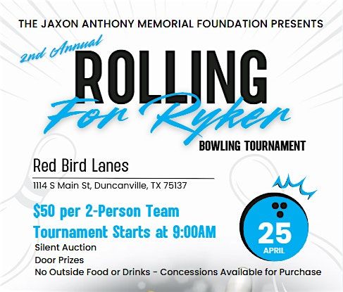 The Jaxon Anthony Memorial Foundation presents the 2nd Annual Rolling for Ryker Bowling Tournament.About this Event