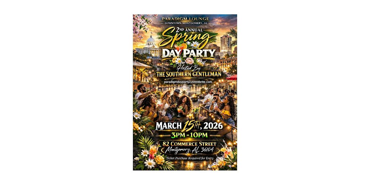 Join us for the 2nd Annual Spring Day Party at Paradigm Lounge in the heart of Downtown Montgomery — hosted by The Southern Gentleman!