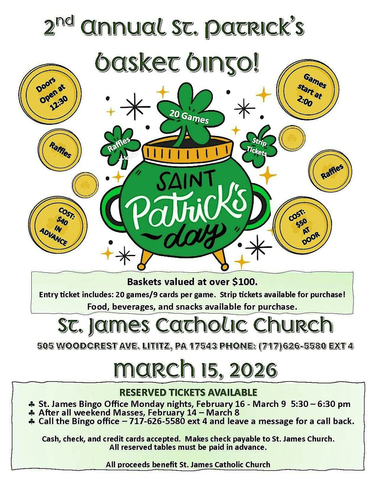 St. Pattie's Basket Bingo March 15th, 2026