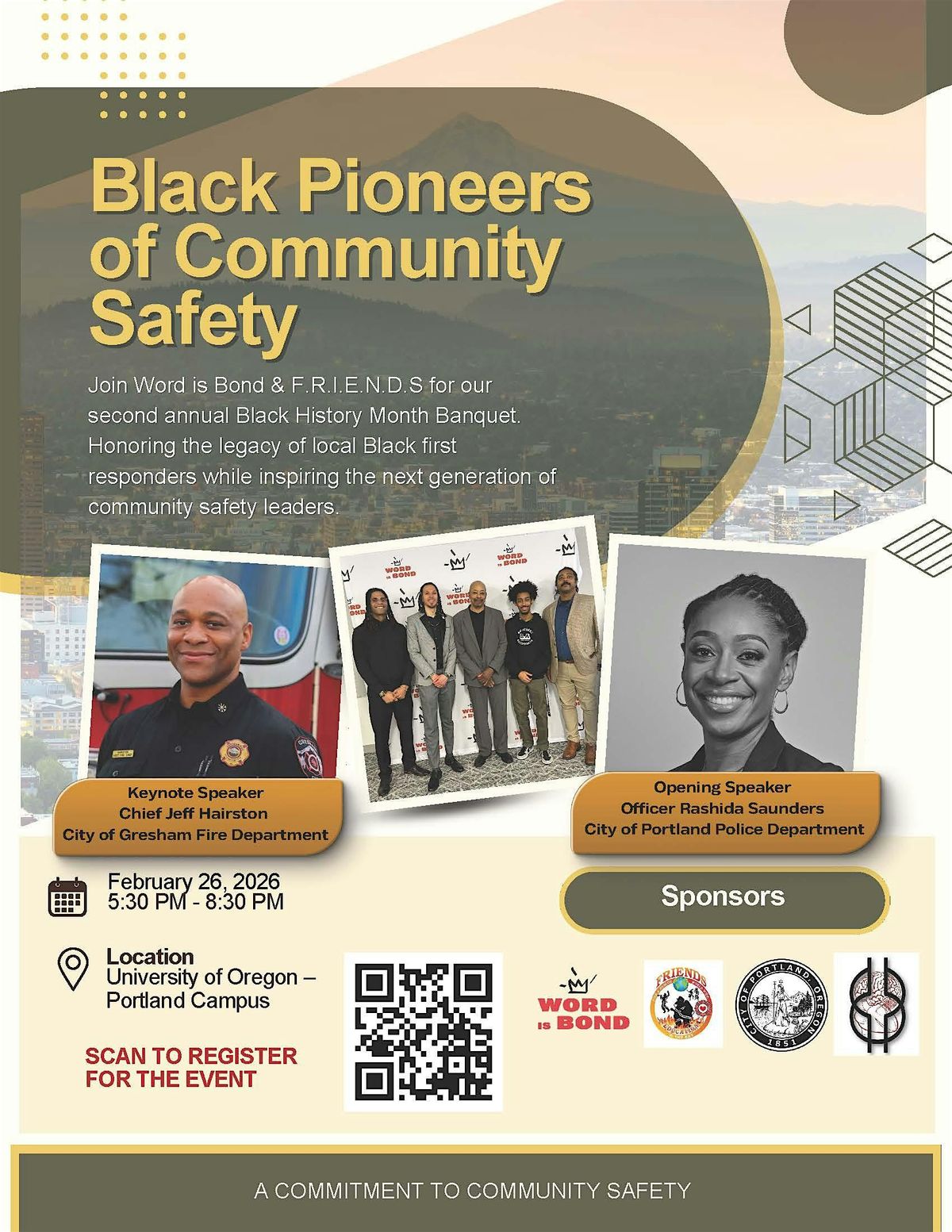 Celebrate Black History Month with us at the Second annual Word is Bond & FRIENDS Banquet! As we honor Pioneer Black Firefighter Month & Pioneer Black First Responder Month!