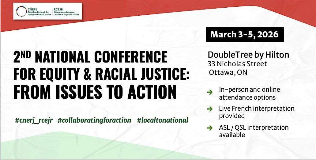 We are excited to announce that the Canadian Network for Equity and Racial Justice (CNERJ) will host its SECOND National Conference in March 2026 in Ottawa!