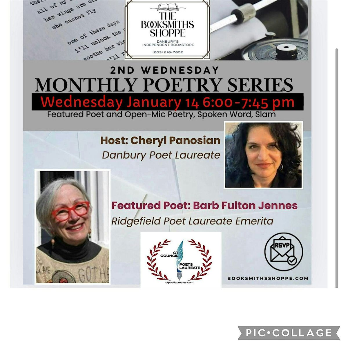 The Danbury Poet Laureate, Cheryl Panosian, shares her poems and invites you to share yours too. This month joining in the festivities is the Ridgefield Poet Laureate Emerita, Barb Fulton Jennes.
