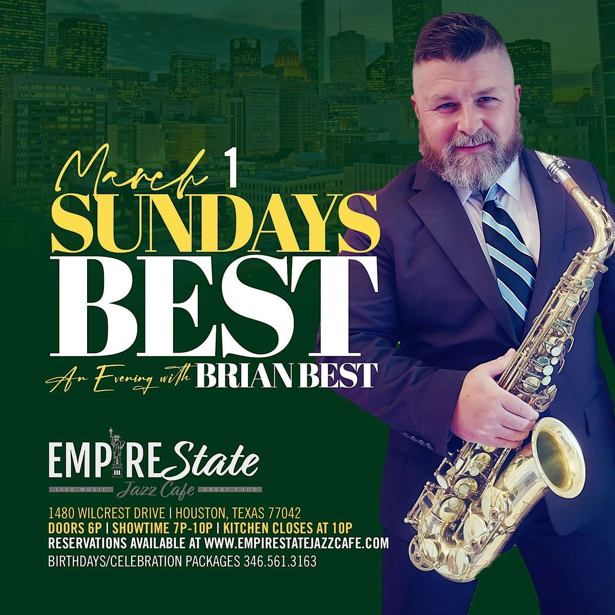 Welcome to **Supper Club Sundays: An Evening with Brian Best & Friends** at the Empire State Jazz Cafe! Get ready to enjoy an unforgettable night filled with amazing music and delicious food. Mark your calendars for **March 1, 2026 at Doors 6:00 PM | Shpwtime 7PM** (Central Time) and join us for a fantastic experience. Don't miss out on this opportunity to unwind, socialize, and create lasting memories. See you there!