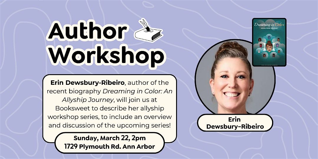 Erin Dewsbury-Ribeiro, author of the recent biography Dreaming in Color: An Allyship Journey, will join us at Booksweet to describe her allyship workshop series, to include an overview and discussion of the upcoming series!